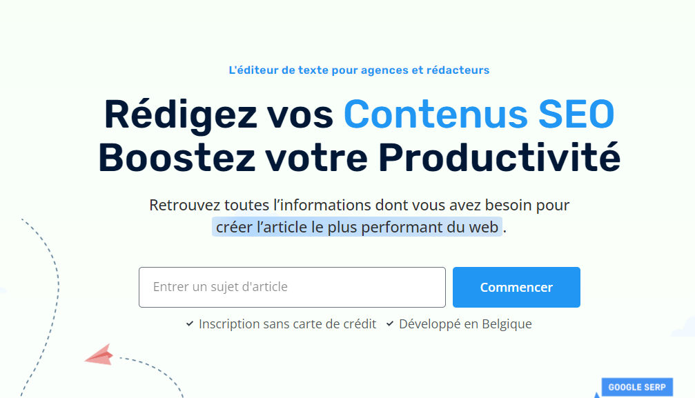 Dobrief est une solution tout-en-un qui vise à simplifier le processus de rédaction de contenu optimisé pour les moteurs de recherche (SEO). Il s’agit d’une plateforme en ligne qui offre une multitude d’outils conçus pour aider les rédacteurs, les rédacteurs en chef et les agences de marketing à gagner du temps et à améliorer la qualité de leur contenu. En utilisant Dobrief, vous pouvez créer des articles qui se démarquent sur le web en termes de pertinence, de qualité et de visibilité.